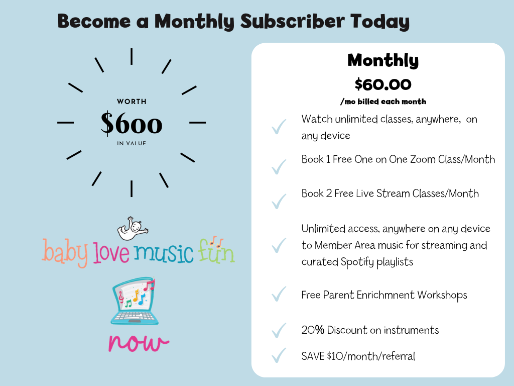 ,$60/Month for Massive Subscriber Benefits. ,Just $2 day ,to watch your child grow a bigger, better, brain using our music and brain boosting activities!